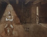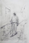 2024'Oude man op de zee' Droge naald op tetrabrick